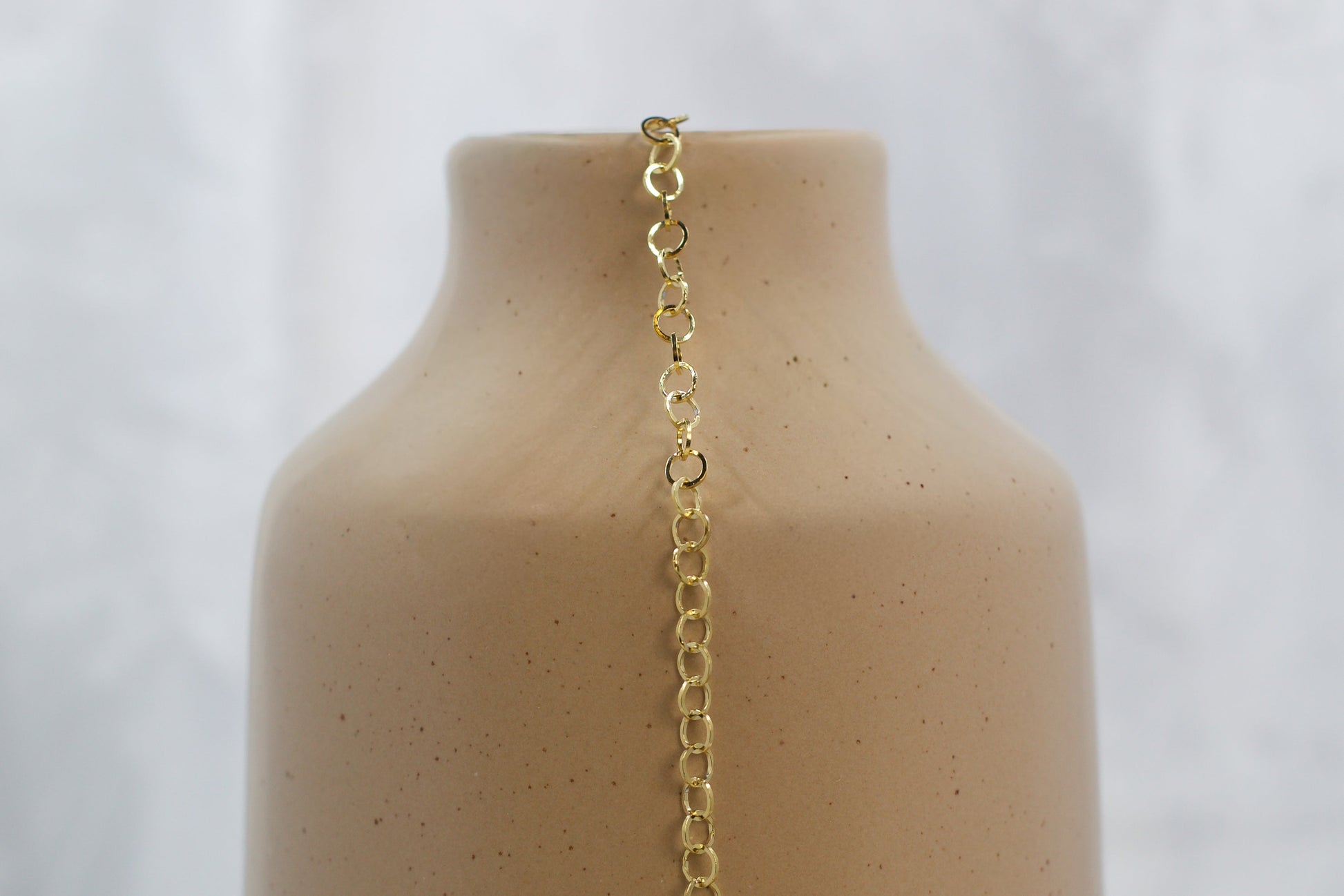 Capri features PVD stainless steel gold-plated rolo links creating a modern and minimalist design. Crafted for durability, this polished chain offers a warm, refined shine — perfect for creating timeless jewelry pieces with effortless elegance.