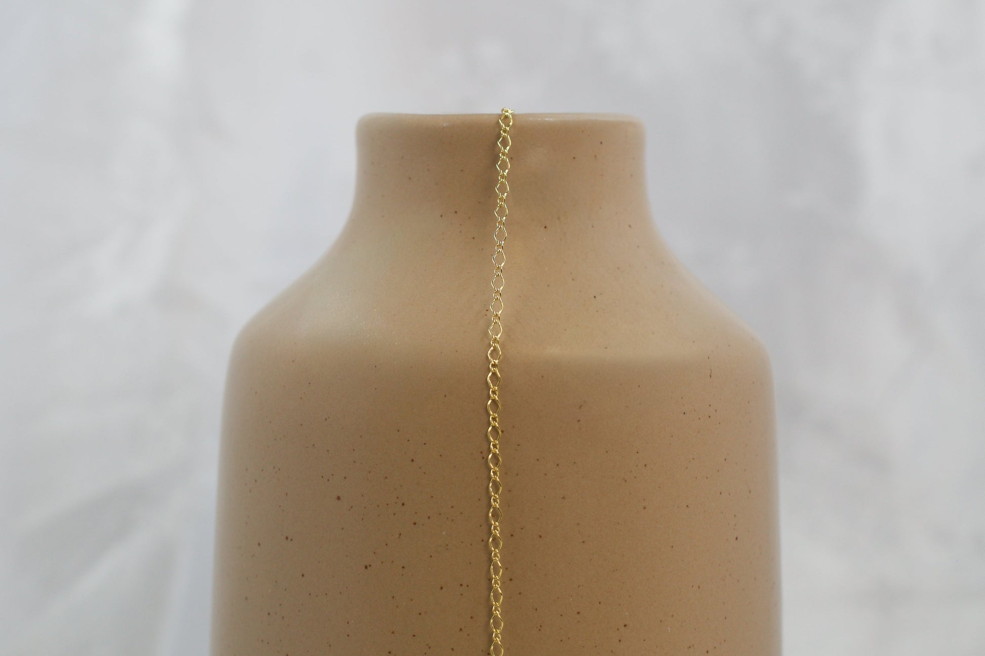 Delilah features a gold-filled dainty cable chain designed with alternating link sizes for subtle movement and visual interest. Tarnish-resistant, this delicate yet durable chain offers timeless charm and effortless versatility — an ideal choice for creating refined, everyday jewelry pieces that layer beautifully.