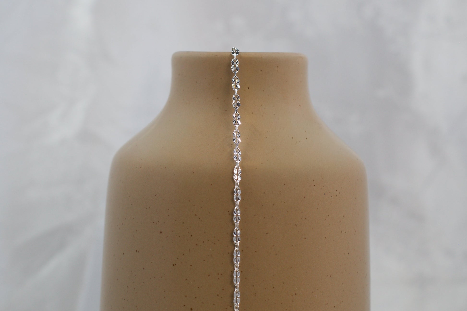 Gia features a sterling silver chain crafted with infinity-embossed links for a sleek, symbolic design. This durable chain offers a luminous finish with timeless meaning — an ideal choice for creating refined, everyday jewelry pieces with elegant detail.