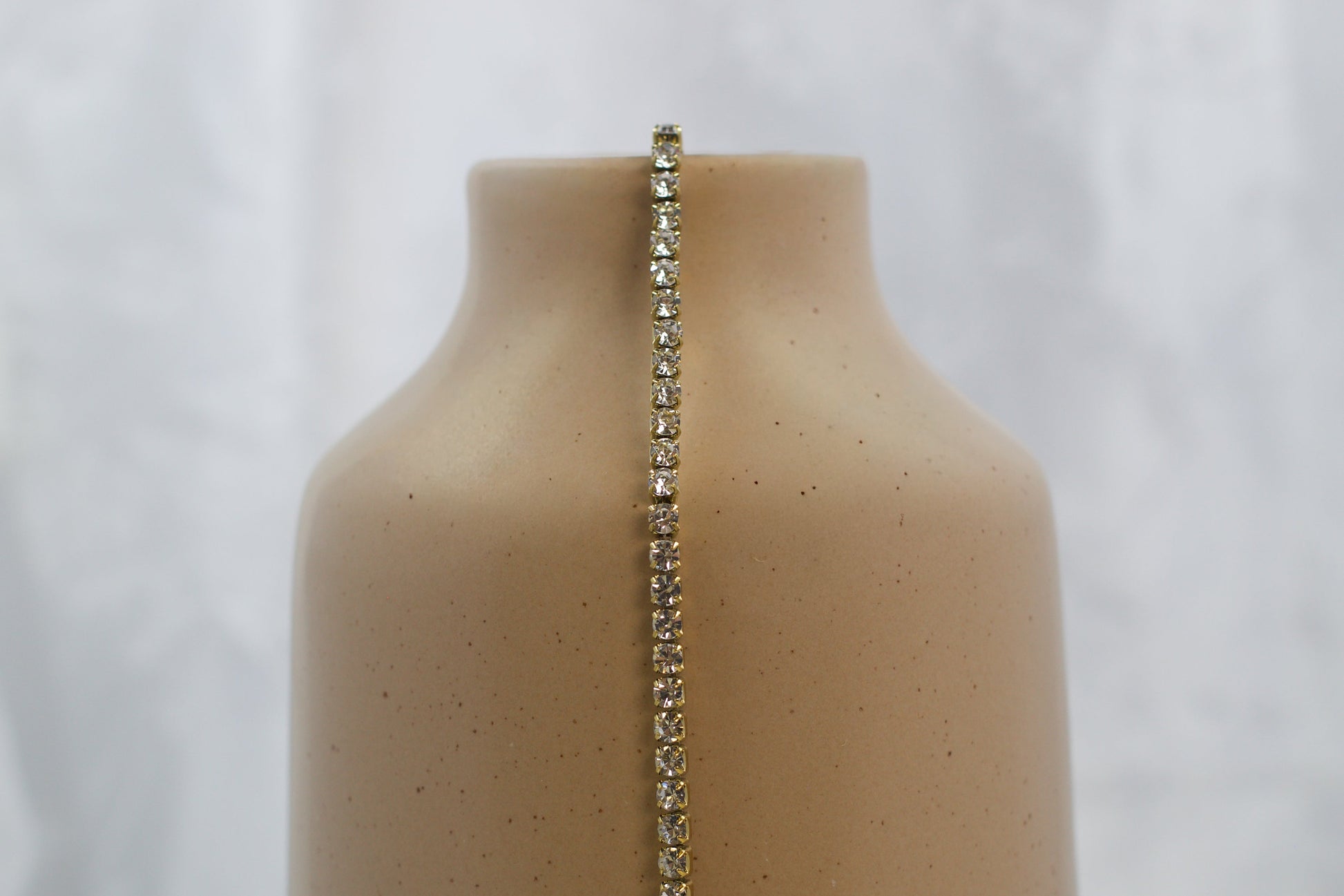 Juliette features a PVD gold-plated stainless steel tennis chain accented with sparkling rhinestones for a refined, romantic look. This durable chain blends luminous shine with timeless elegance — an ideal choice for creating elevated jewelry pieces that feel graceful, glamorous, and effortlessly wearable.