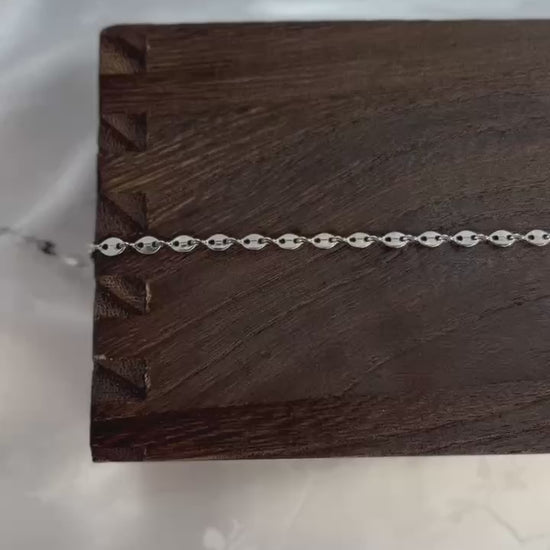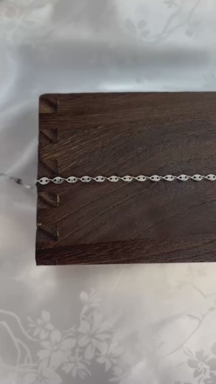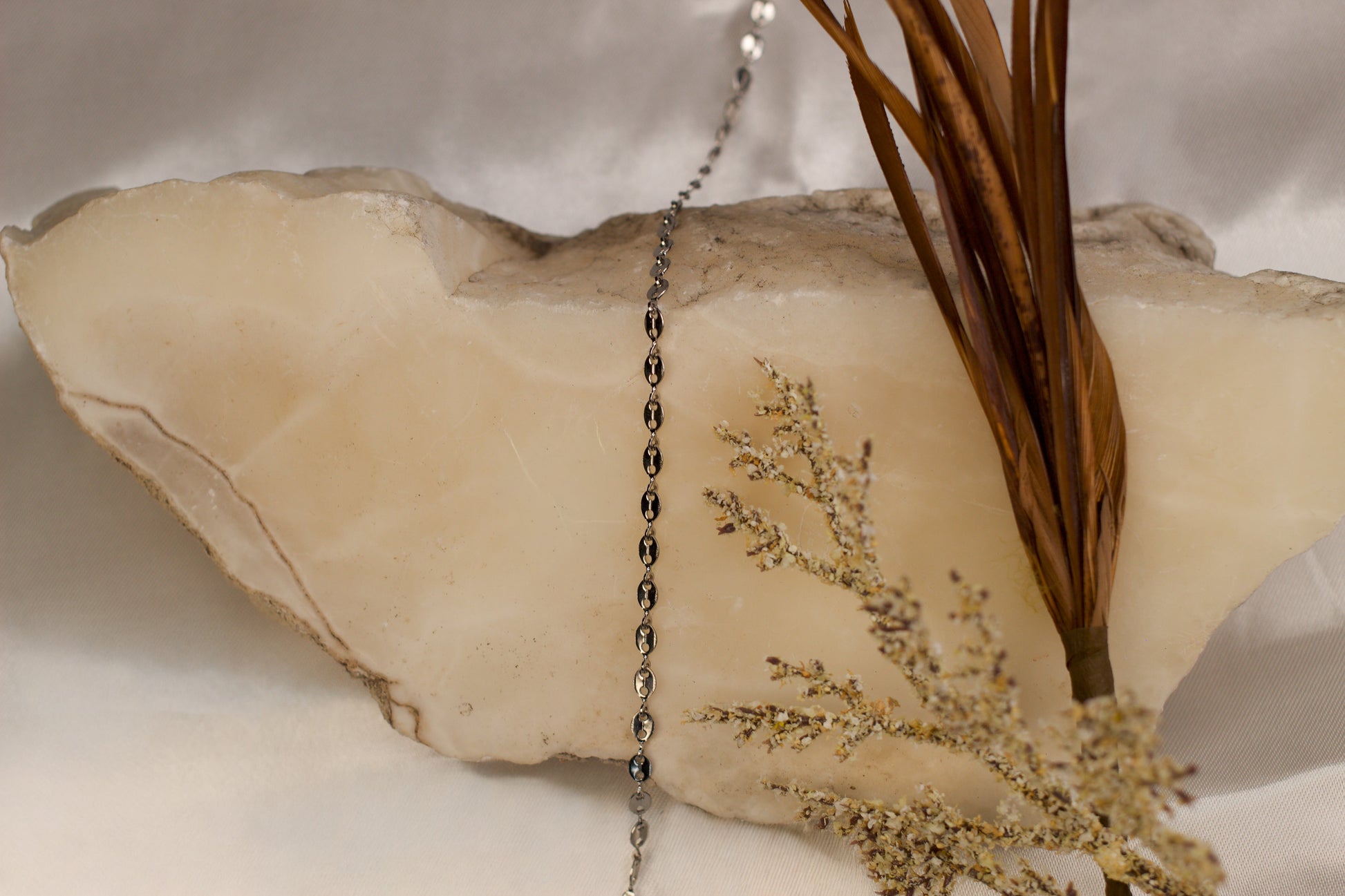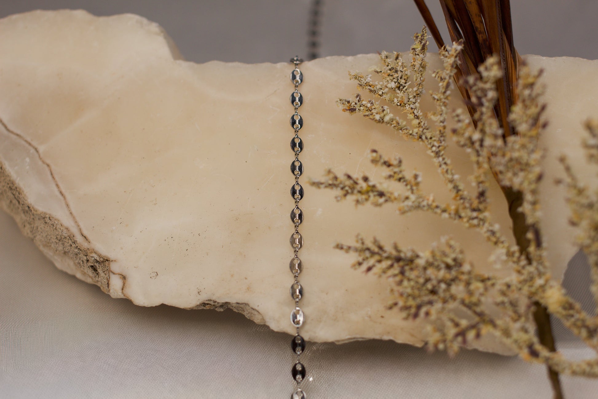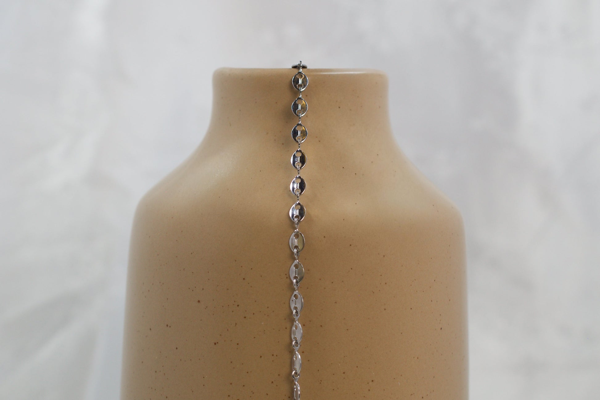 Norah features elongated oval PVD stainless steel links that add a fresh, playful twist to a classic design. Crafted for durability and lasting shine, this sleek chain offers a modern, versatile look — perfect for creating layered or standalone jewelry pieces with effortless charm.