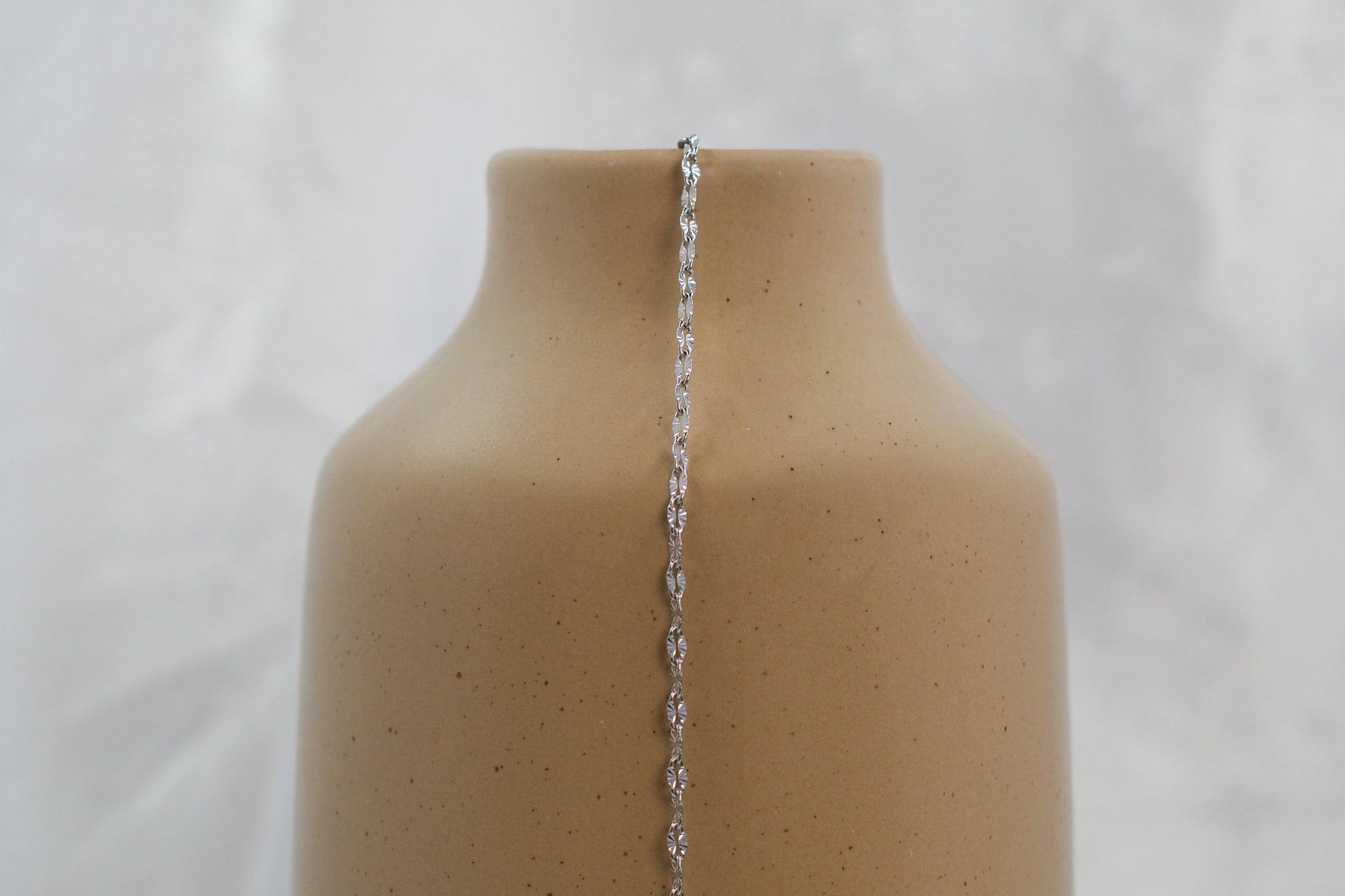 Nova features cable-pressed PVD stainless steel links detailed with fine ridges for a refined, textured finish. Crafted for lasting strength and shine, this durable chain offers a sleek, sophisticated design — ideal for creating elegant, timeless jewelry pieces.