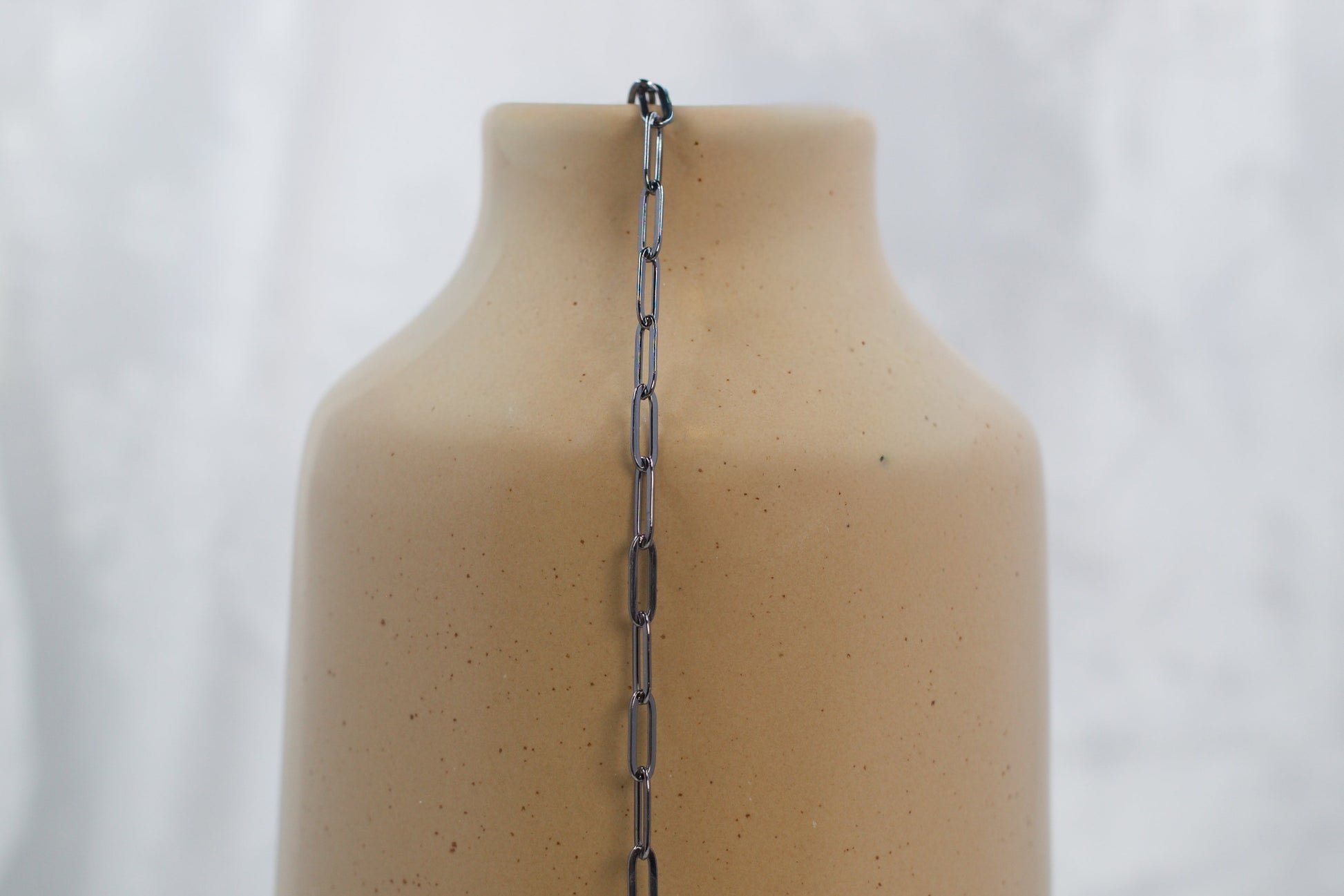 Orlando features PVD stainless steel rhodium-plated paperclip links with a sleek rhodium finish, offering a bold, modern edge to any design. Crafted for lasting wear, this minimalist chain combines strength with a polished gunmetal shine — ideal for creating contemporary, statement jewelry pieces.
