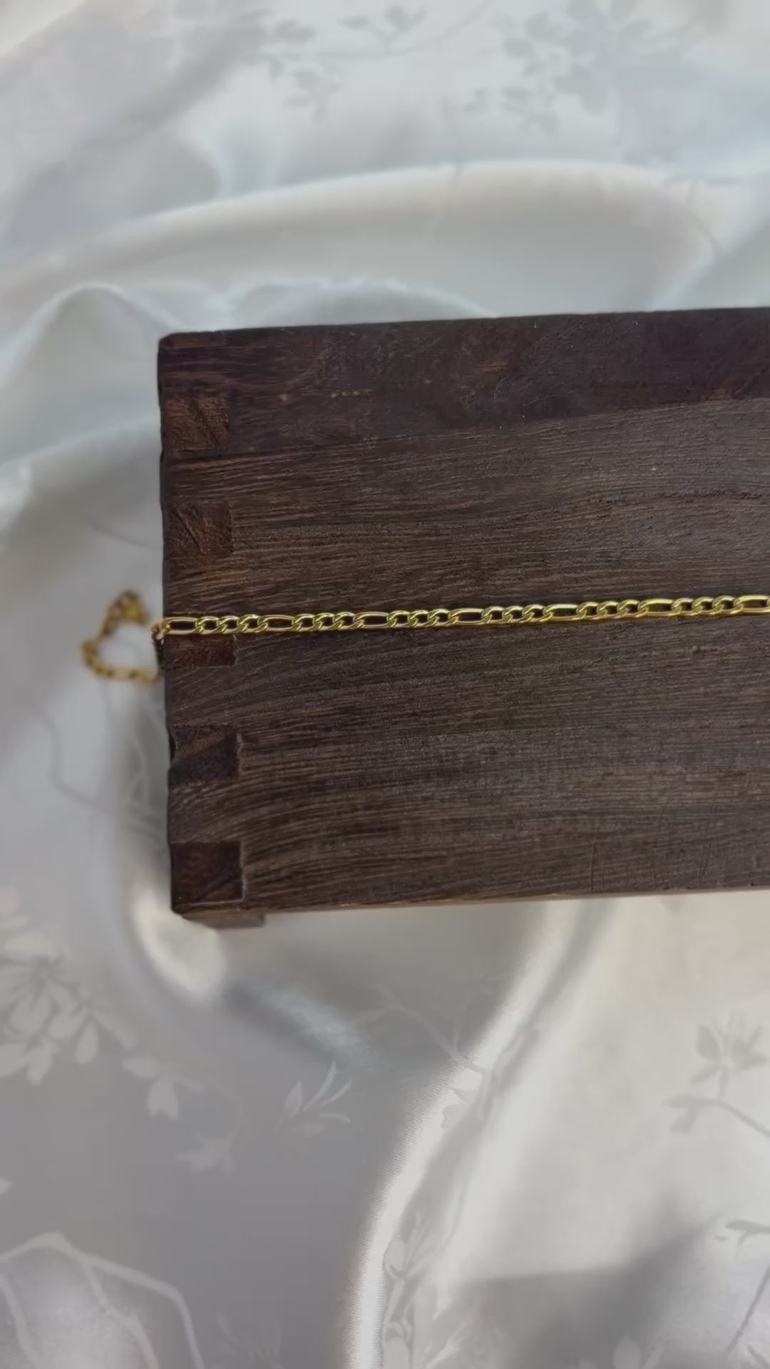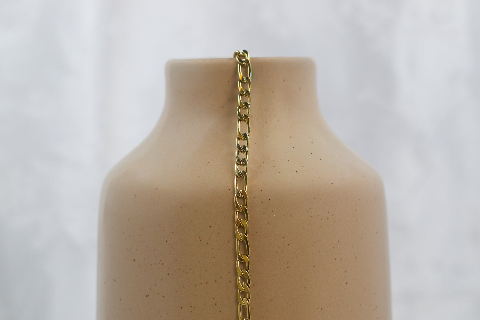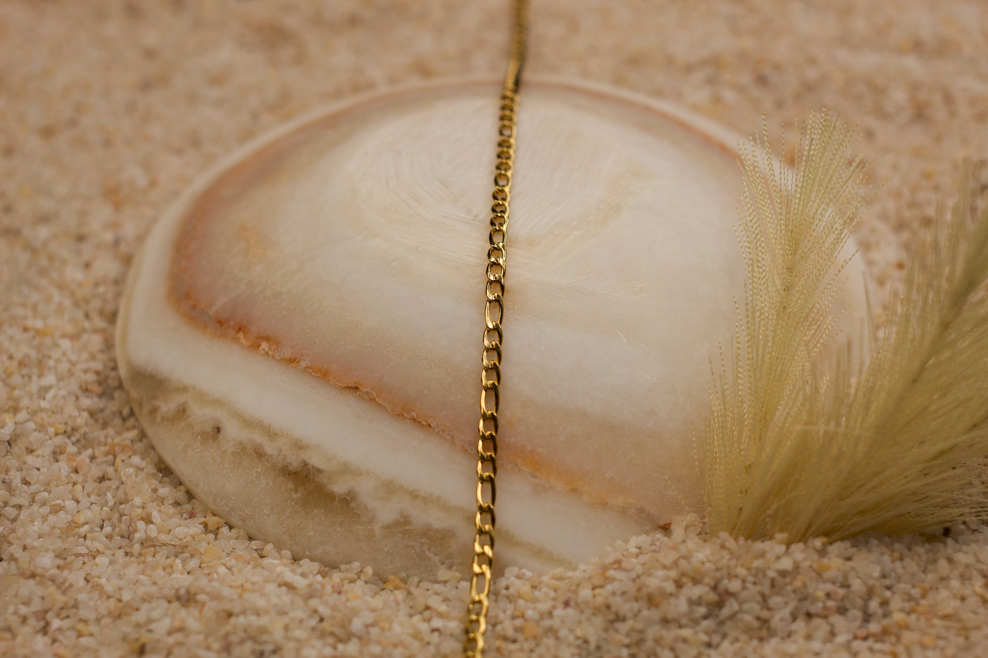 Rome features a PVD gold-plated stainless steel Figaro chain designed with classic alternating links for a timeless, elevated look. This durable chain delivers bold sophistication with a refined finish — an ideal choice for creating statement jewelry pieces that feel both iconic and versatile.