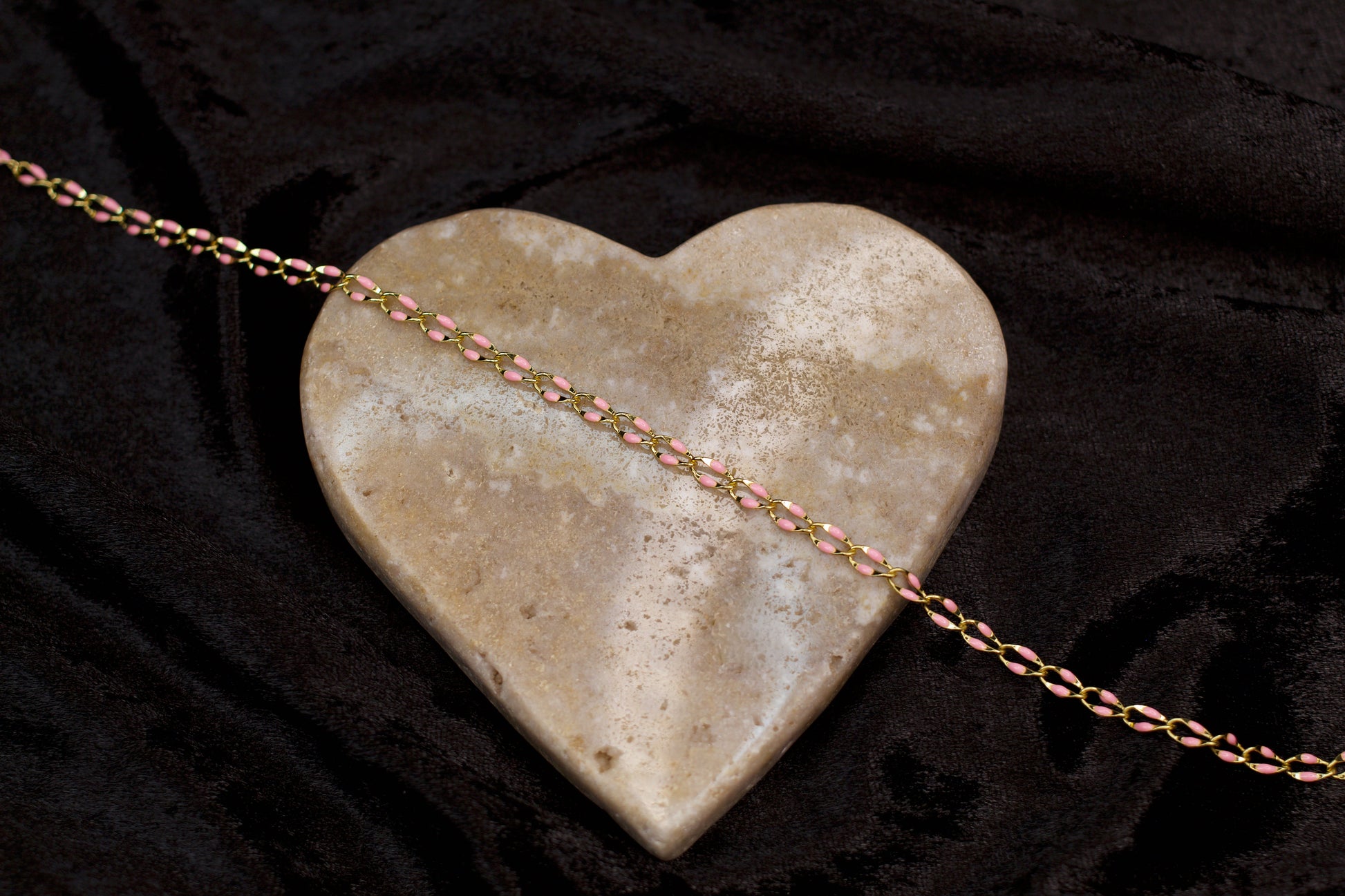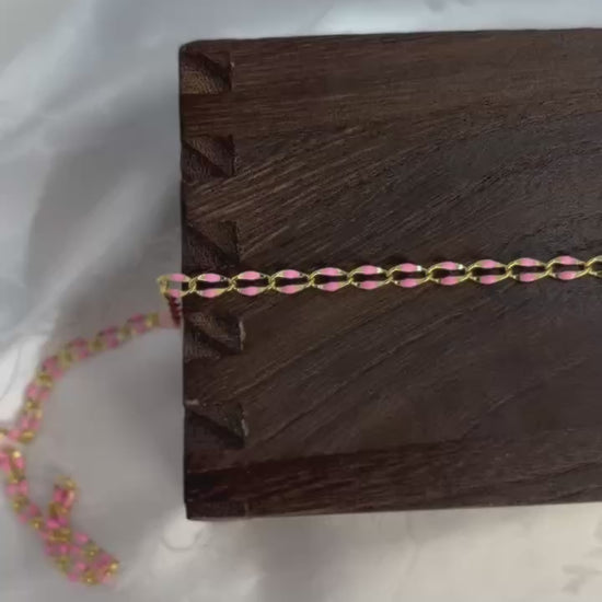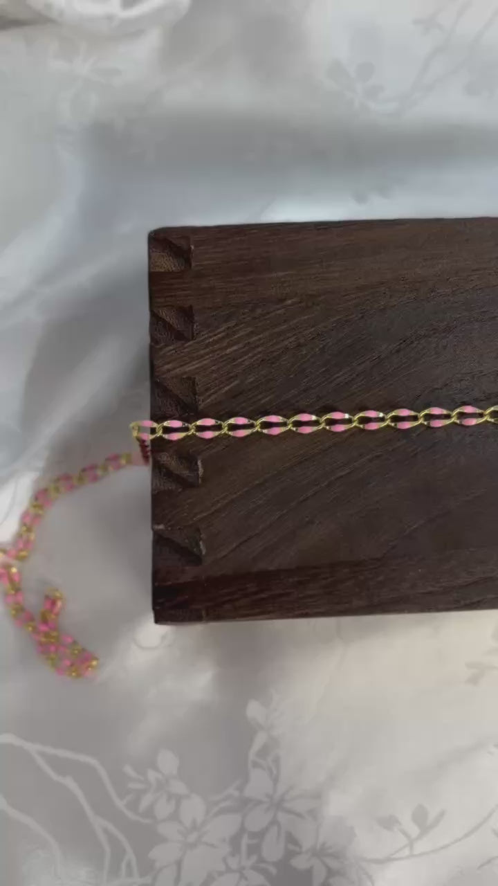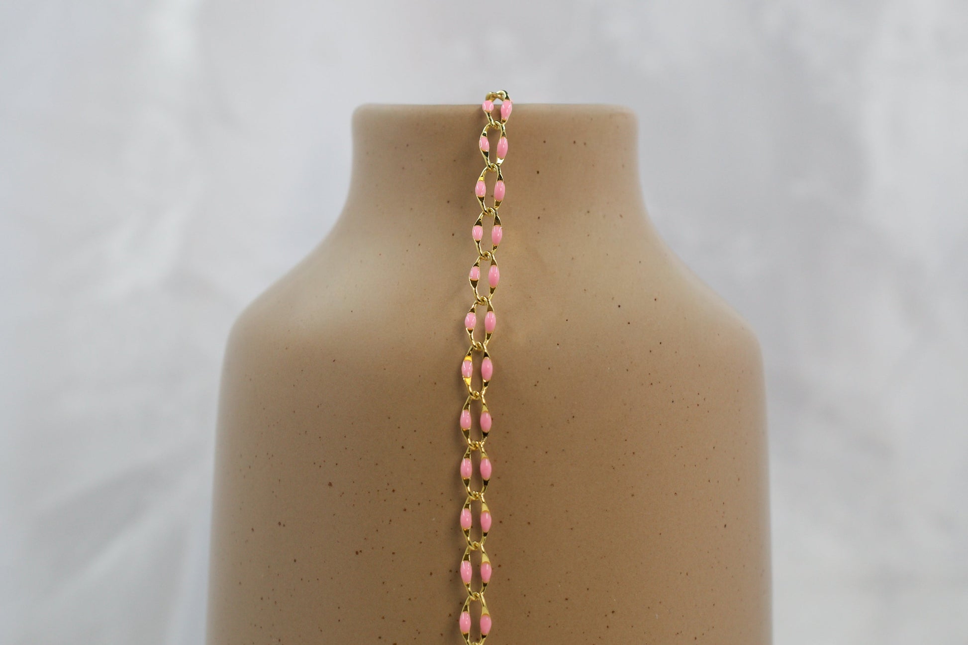 Rosie features a PVD gold-plated paperclip chain accented with a bold strip of hot pink enamel for a sleek, eye-catching finish. Tarnish-resistant and crafted for lasting durability, this vibrant design offers a modern statement — perfect for creating stylish jewelry pieces that stand out with confidence.