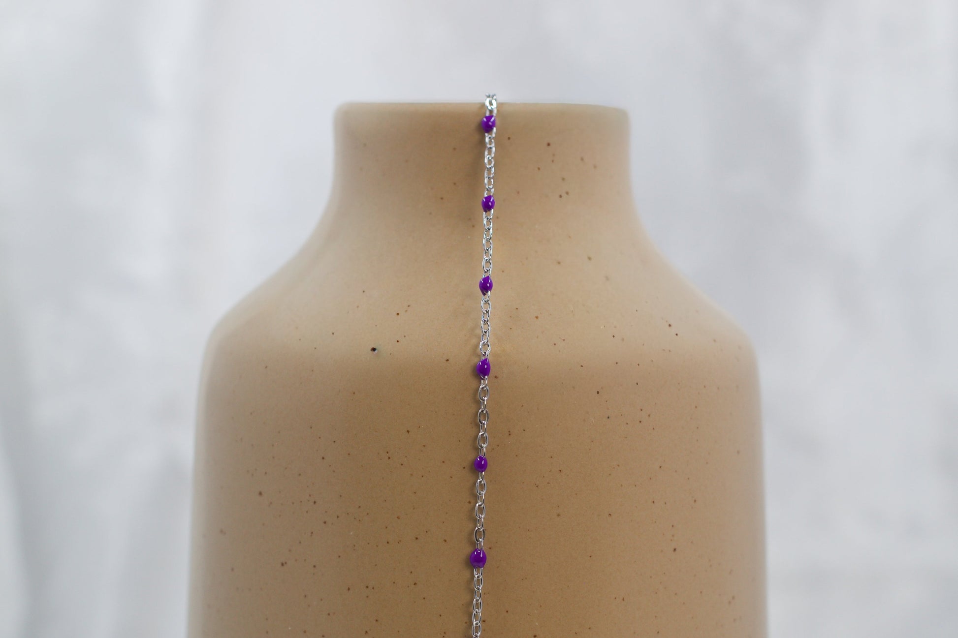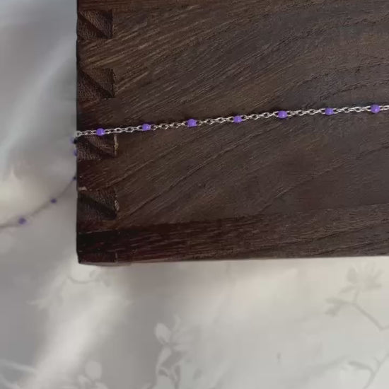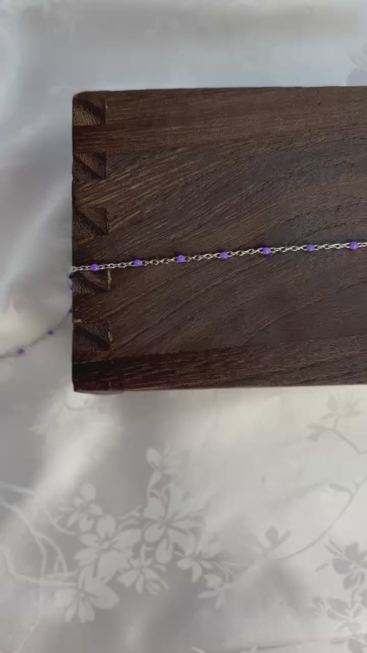 Rue features a PVD stainless steel chain accented with vibrant purple enamel beads. Tarnish-resistant and crafted for lasting shine, this durable chain combines a sleek, modern finish with rich color — ideal for creating timeless jewelry pieces designed for everyday wear.