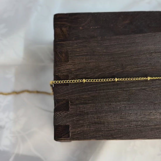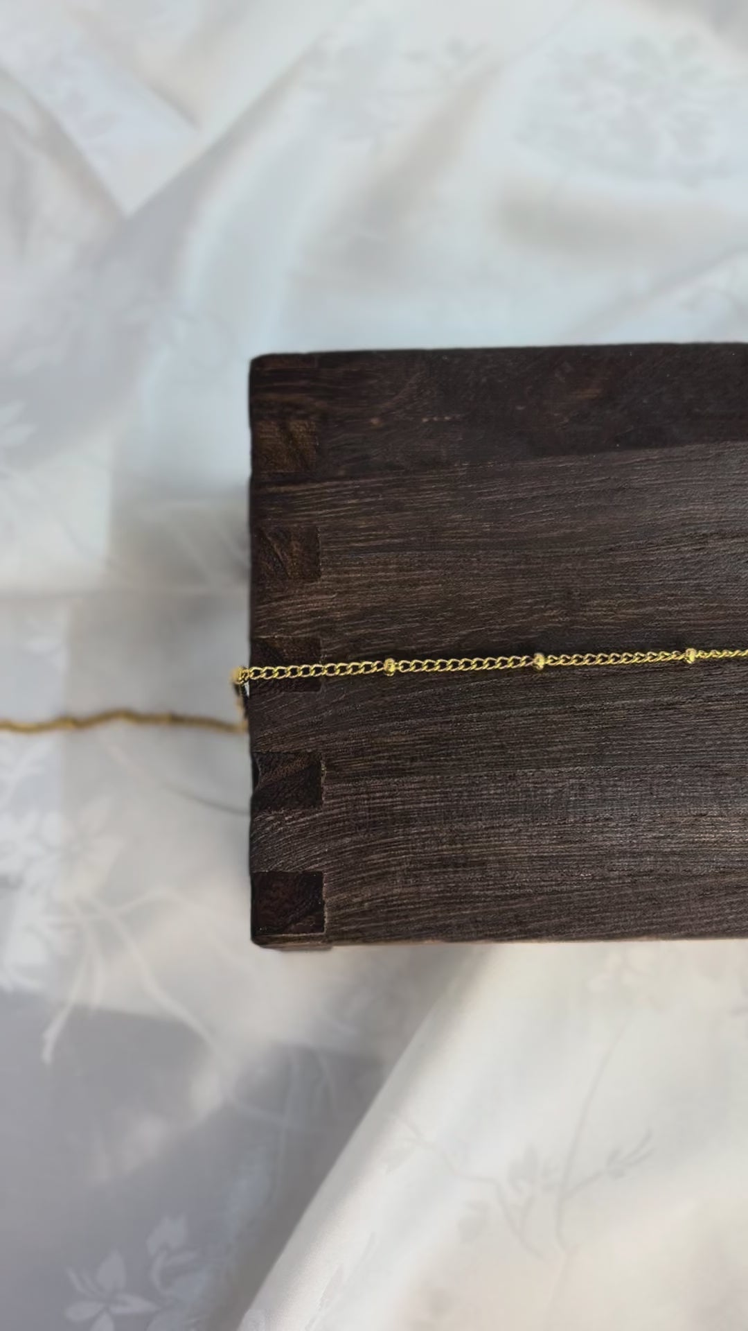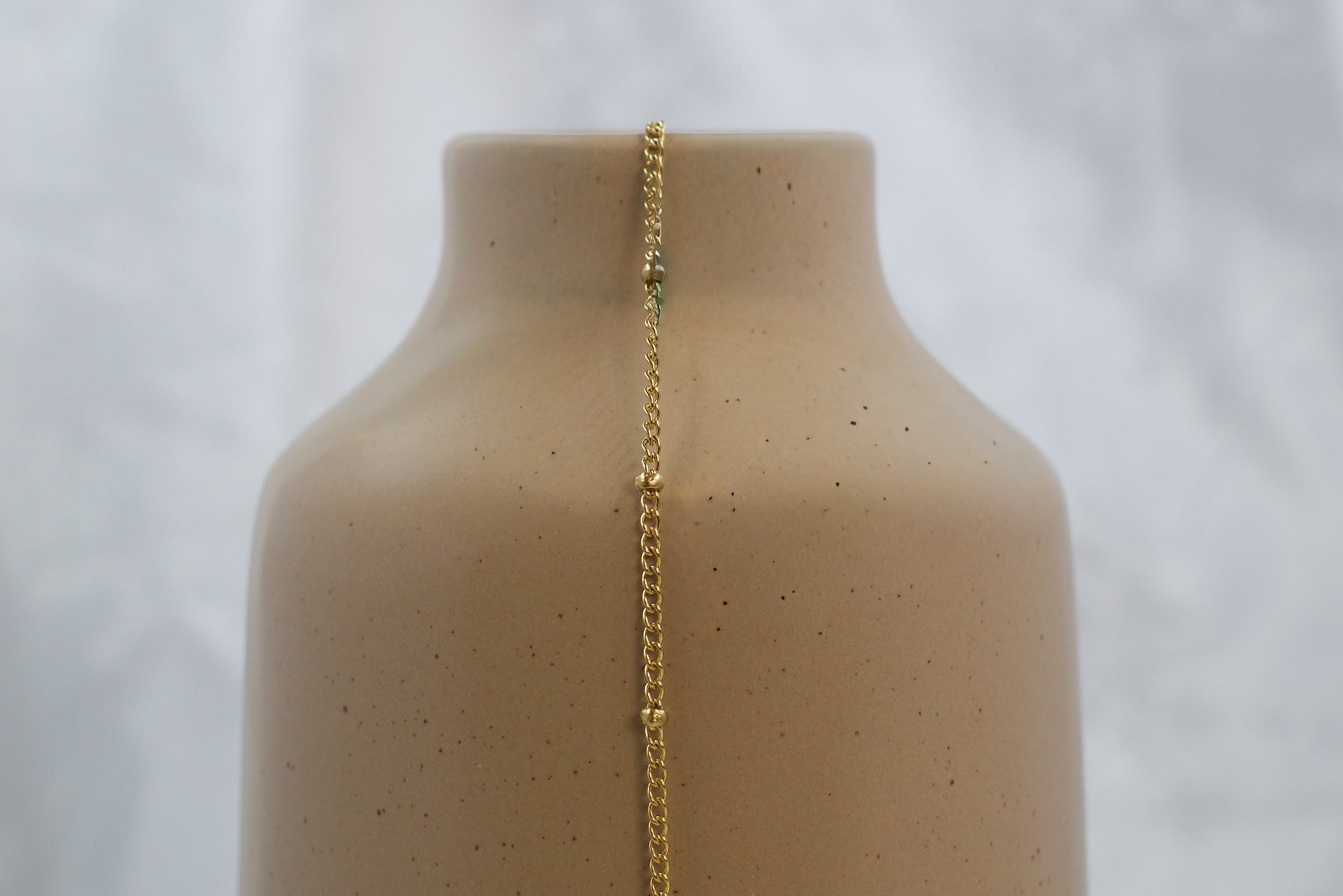 Willow features a PVD gold-plated stainless steel curb chain with evenly spaced beads crafted from matching materials for a cohesive, polished look. Designed for durability and lasting shine, this refined chain offers timeless elegance — perfect for creating jewelry pieces suited for both everyday wear and special occasions.