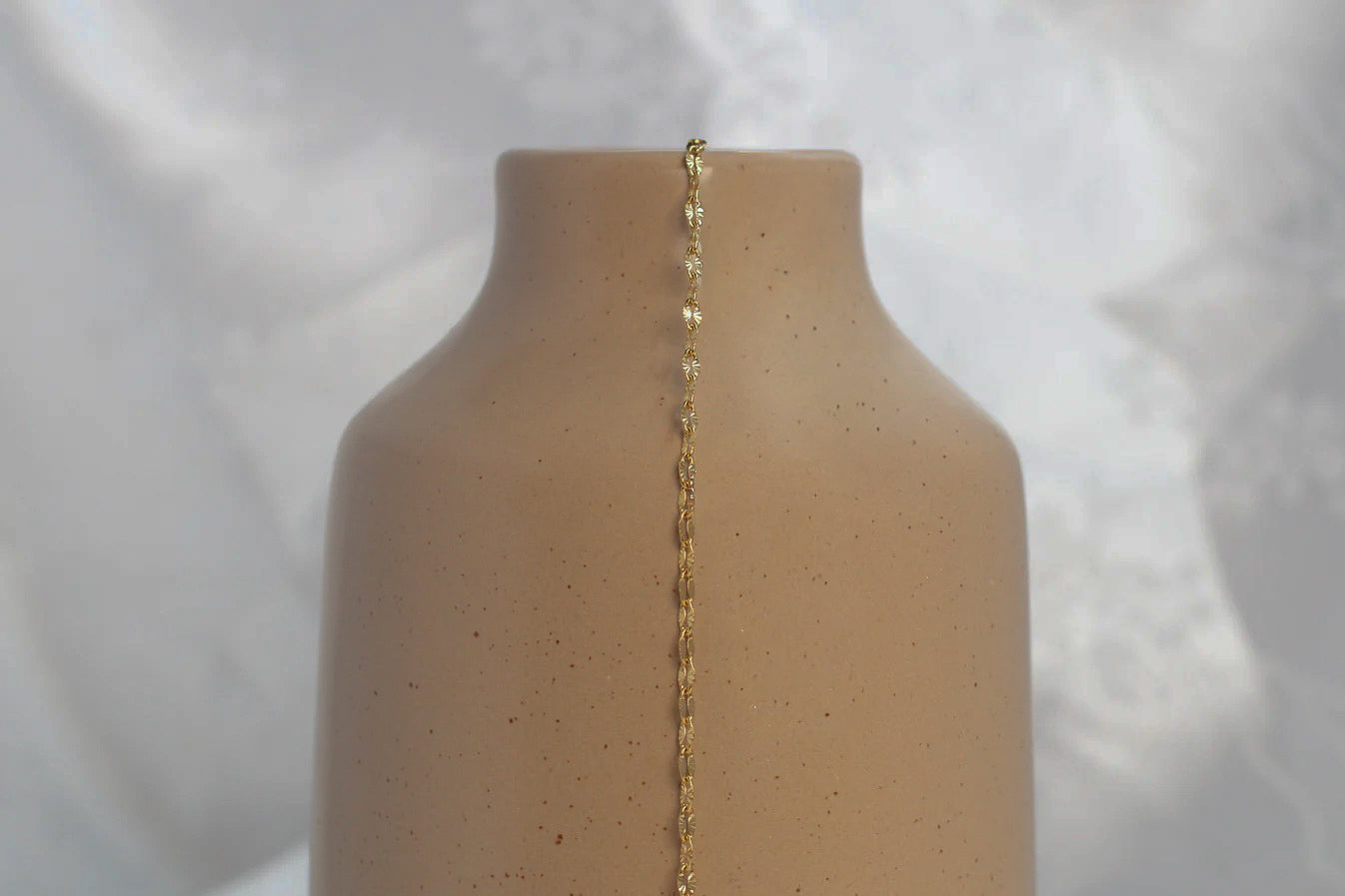 Winnie features PVD gold-plated stainless steel cable-pressed links with subtle ridged detailing. Designed for durability and shine, this chain combines textured elegance with refined craftsmanship — perfect for creating timeless jewelry pieces that exude sophistication.